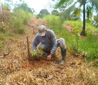 Los señores Uberney Fernández, Mario Cuadrado, señor Ernis y Carlos Gómez, nos comparten su aporte al medio ambiente, colaborando con la recuperación de una quebrada “micro cuenca”.