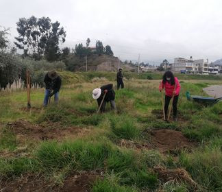 El señor Martín nos comparten la hermosa labor sembrando árboles en la ribera del Rio Chibunga en la ciudad de Riobamba.